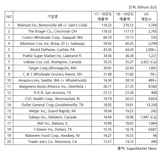 ▶ 출처: Supermarket News-Top 75 Retail & Wholesale 2019
