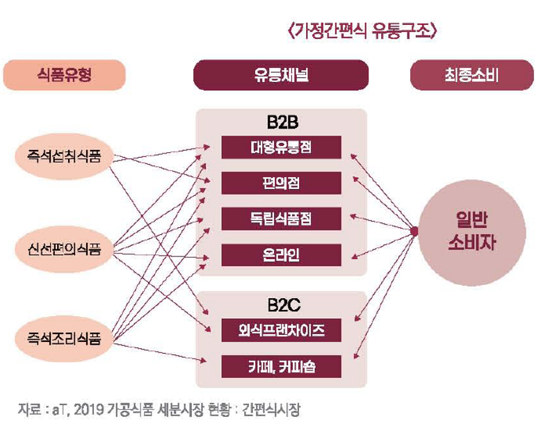 가정간편식은 품목별로 유통 구조가 상이하나 일반적으로 도소매 채널을 중심으로 유통되고 있다. 최저시급 인상,
