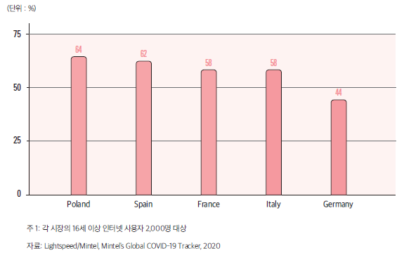 → 유럽 인터넷 사용자를 대상으로 진행된 설문조사에서 코로나19 이후 온라인 쇼핑의 사용 빈도가 높아지거나 현재와 비슷한 수준을 유지한다는 답변이 더 적어진다는 답변에 비해 많은 것으로 나타났다.