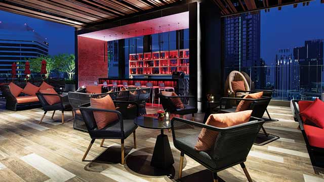 Located on the 25th floor of the brand new Novotel Bangkok Sukhumvit 4, in the heart of a bustling business and entertainment district, RedSquare Rooftop Bar is a trendy Bangkok rooftop venue that offers a new perspective on Asia’s most exhilarating city.