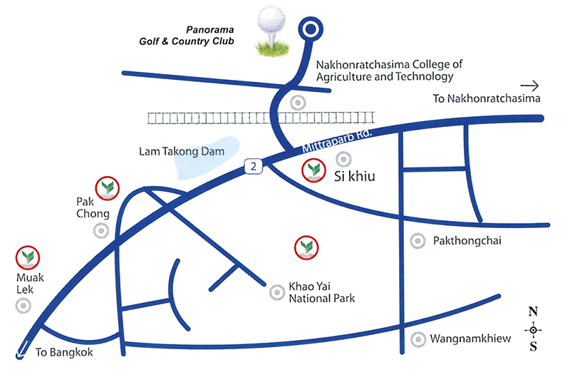 카오야이 국립공원 방향, 빡청에서 접근하거나 사라부리에서 2번 루트를 통해 가는 방법이 있다. 1번 도로에서 2247번 도로와 만나는 지점을 지난 후 커다란 호수를 왼쪽으로 끼고 좌회전 한 후 약 9km 지점에 골프장 입구가 나온다.