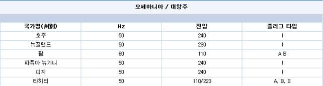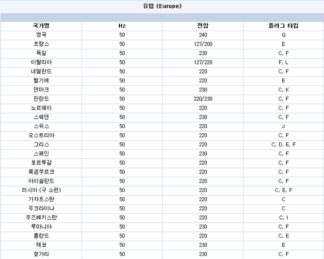 세계 각국의 전압 및 플러그 모양