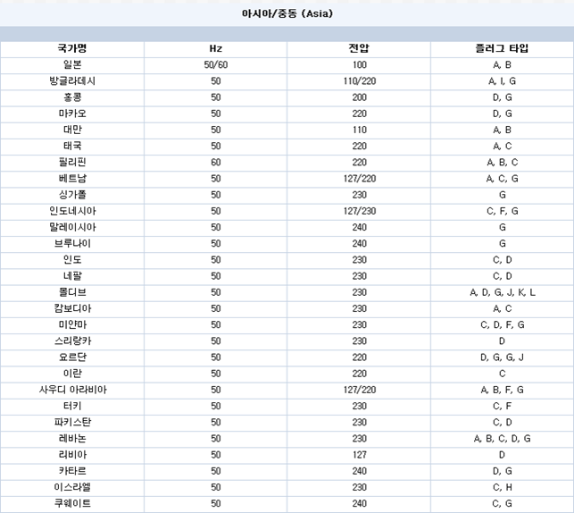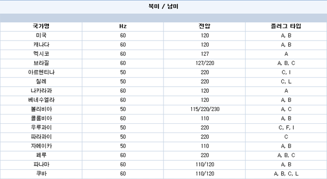 지역별 전압