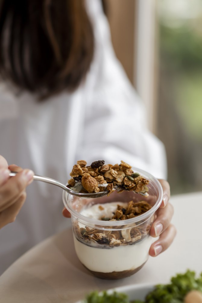 음식 면에서는 다양한 샐러드, 스무디, 아사이 볼 등 건강한 메뉴가 가득합니다. Yellow Mellow, Get Shrek'd, Berry Grape-ful과 같은 스무디부터 Tuna San, Hail Caesar, Bibim Go, Gin Jai에 이르기까지, 모든 메뉴는 신선하고 건강한 재료로 만들어져 건강한 식사를 즐길 수 있습니다. 특히, Choco Banana Yogurt과 같은 건강한 디저트까지 제공되어, 맛있고 건강한 식사를 완벽하게 마무리할 수 있습니다.