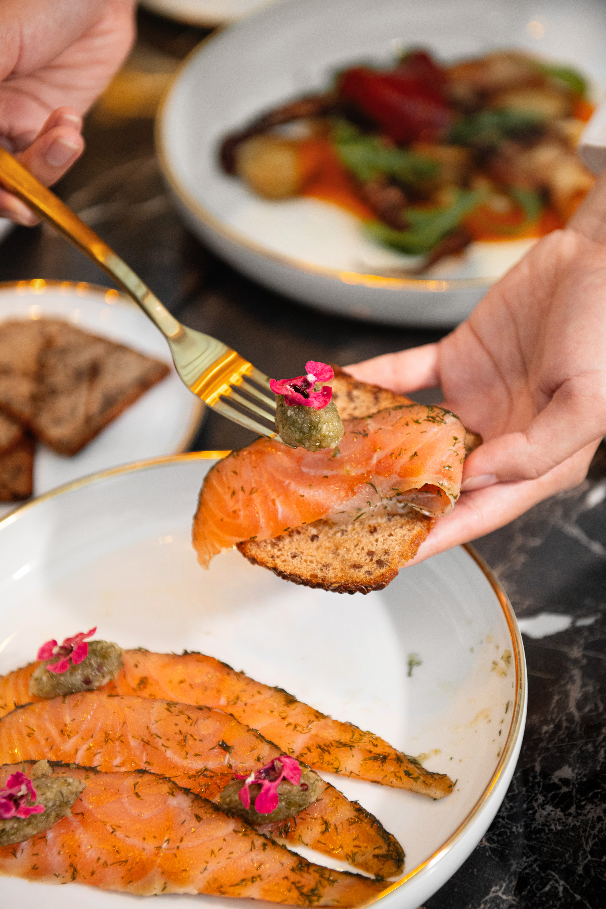 식사 메뉴에서는 호주와 미국에서 수입된 최고의 쇠고기와 신선한 해산물을 선택하여 조스퍼 차콜 그릴을 사용해 독특한 향을 더해 조리합니다. 그릴에 구운 스페인 문어, 호박꼬치 스칼럽, 딜에 절인 연어, 손으로 자른 스테이크 타르타르 등 다양한 요리를 선보입니다.