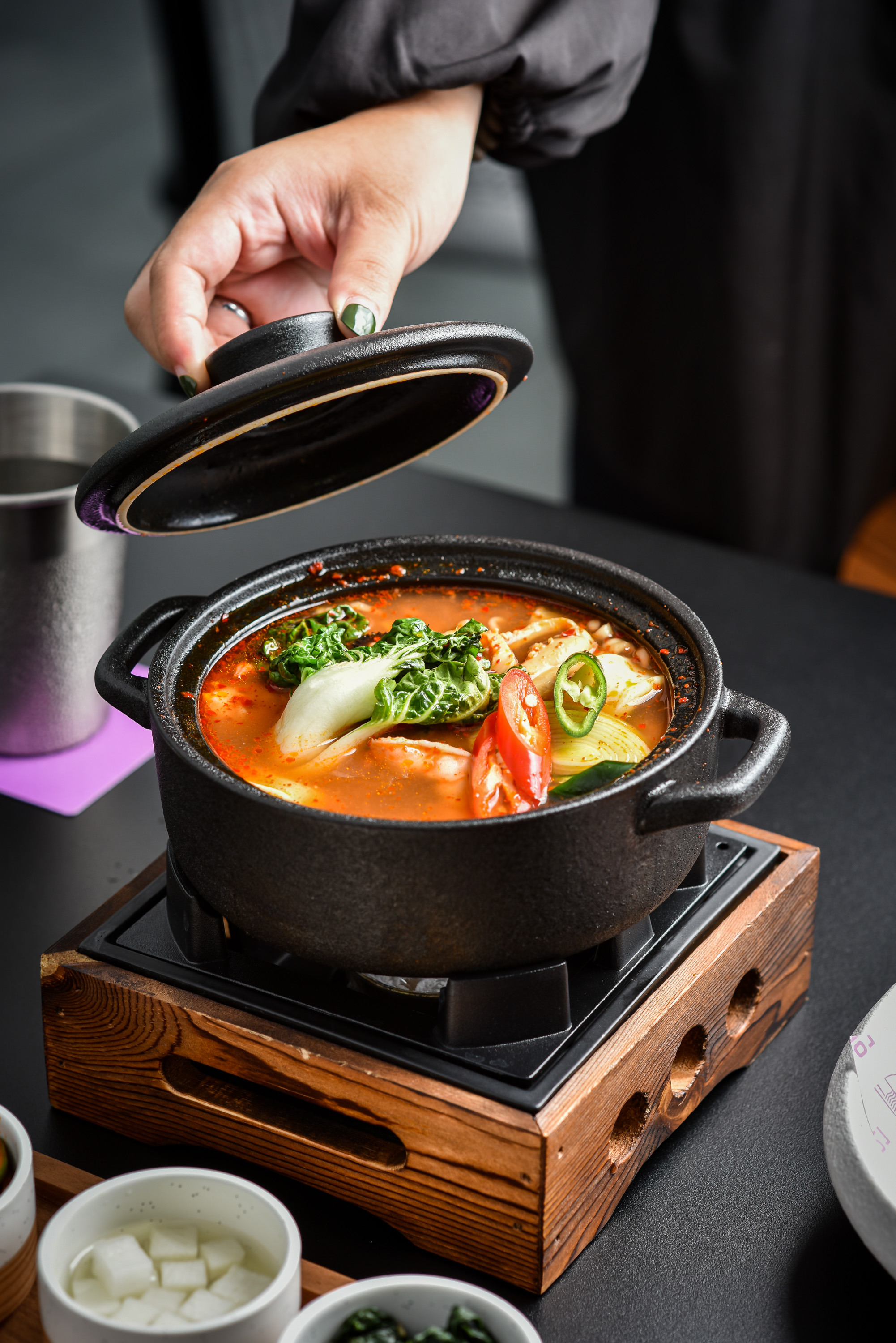 이곳에서 제공하는 서울 음식 메뉴는 한국인들에게 친숙한 다양한 한국 음식들로, 최고의 재료를 사용해 새로운 창작물을 만들면서도 원래의 맛을 유지하고자 노력합니다. 특히 비가 오는 시즌에 추천하는 첫 번째 메뉴는 Seafood Noodles로, 매콤하고 진한 해물 국물에 부드럽고 쫄깃한 라면 면이 어우러진 핫팟입니다. 또한 추운 날씨에 빠질 수 없는 Fishcake Soup, 매콤한 Sea Snails with Wheat Noodles, Spicy Stir-Fried Baby Octopus 등 다양한 메뉴가 준비되어 있습니다. 더운 날씨에 시원하게 즐길 수 있는 Cold Buckwheat Noodles도 있으며, 닭고기를 좋아하는 이들을 위한 Sweet & Spicy Fried Boneless Chicken도 맛볼 수 있습니다.