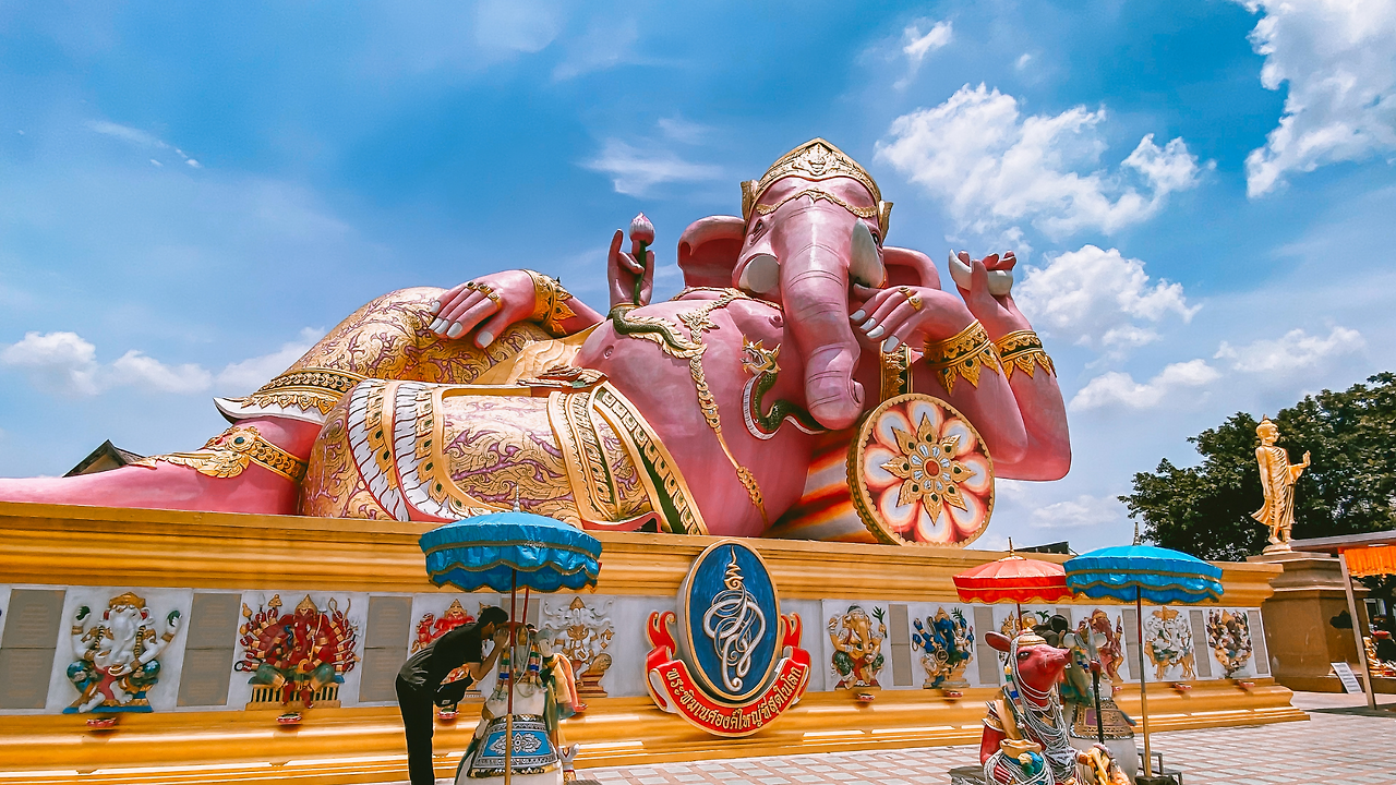핑크 가네샤 사원 (왓 사만 라따나람) – 넷째 날 아침에는 방콕 근교의 숨겨진 명소로 떠나봅니다. 차량으로 동쪽 방향 약 1시간 반 달리면 찟청싸오(Chachoengsao) 주에 있는 핑크 가네샤 사원 (왓 사만 라따나람, Wat Saman Rattanaram)에 도착합니다. 이 사원은 세계에서 가장 큰 분홍색 가네샤상으로 유명하며, 소원을 빠르게 들어주는 영험한 곳으로 현지인들에게 사랑받는 파워스팟입니다. 입장료는 없으며(무료), 사원은 야외에 있어 일출부터 일몰까지 자유롭게 방문 가능합니다. 경내에는 가네샤 외에도 다양한 힌두/불교 신상과 조형물이 있어 구경하는 재미가 있습니다. 거대한 분홍 코끼리 신상 앞에서 사진을 찍어보세요. 이곳에서는 소원 비는 특별한 방법이 있는데, 가네샤상의 탈것으로 여겨지는 쥐 동상의 귀에 대고 속삭이면 소원이 이루어진다고 전해집니다. 자신의 요일에 해당하는 색상의 쥐상에게 소원을 빌고, 한쪽 귀를 막은 채 속삭이면 그 소리를 가네샤에게 전해준다고 하니, 재미 삼아 참여해보세요. 사원 구경은 1~2시간이면 충분하며, 주변 노천 시장에서 간단한 기념품이나 간식을 살 수도 있습니다. 돌아갈 때는 미리 대절한 차량 기사에게 요청해 방콕 시내로 복귀합니다. (대중교통으로 갈 경우 훨람퐁역에서 기차로 찟청싸오까지 간 뒤, 로컬 택시나 쏭태우를 이용해야 하므로 시간 여유를 많이 잡아야 합니다.)