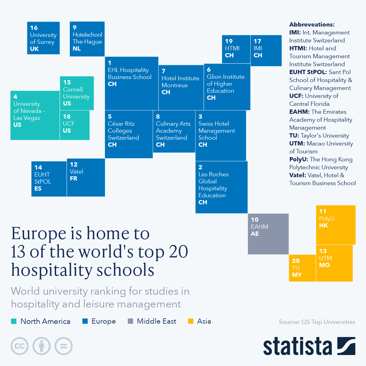 • 아시아(3개): 홍콩 PolyU(11위)·마카오 UTM·TU(각 13·20위) 등 중국어권 관광시장을 겨냥