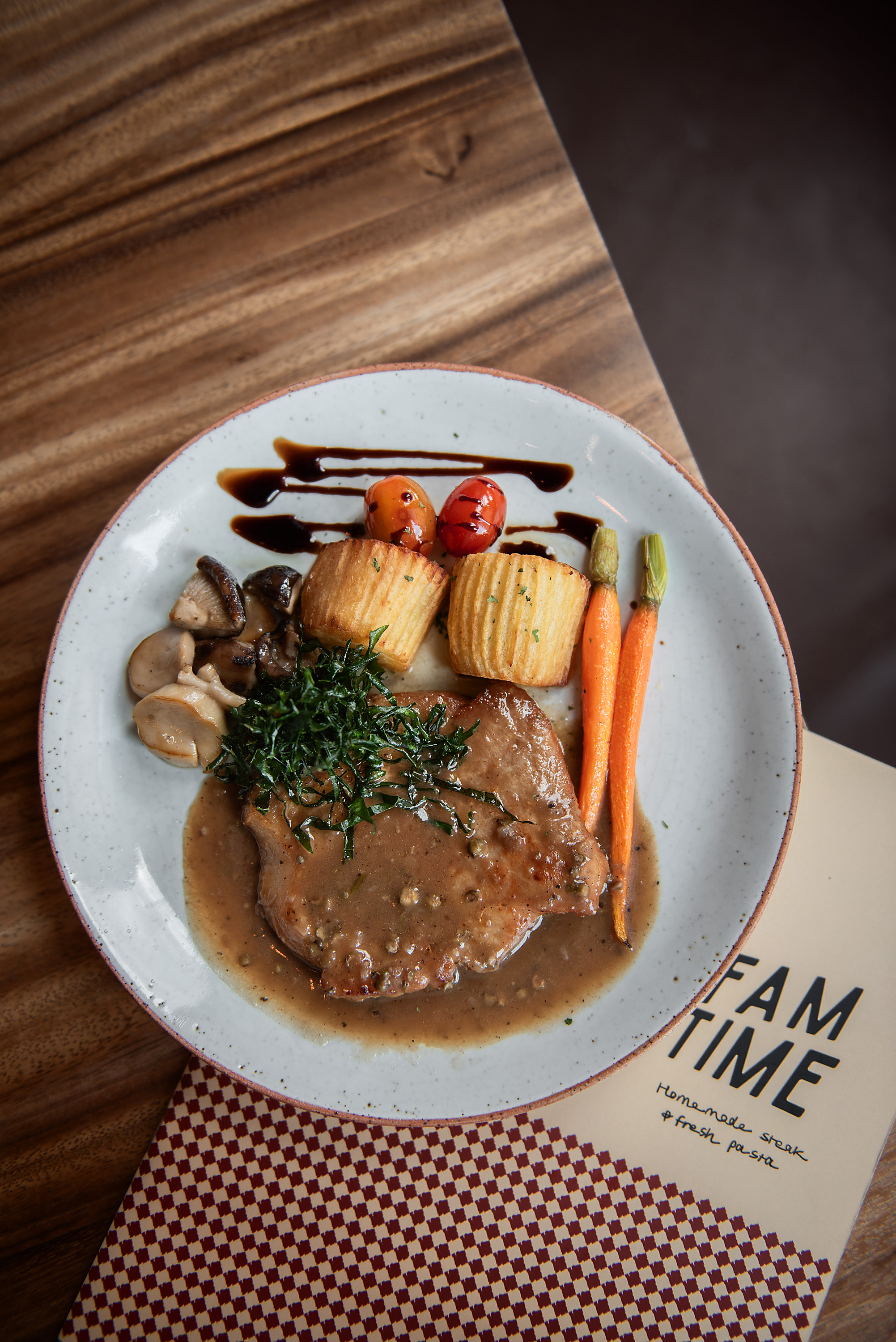 방콕의 시암 지역에 위치한 Fam Time Steak and Pasta는 집처럼 포근하고 따뜻한 분위기를 자랑하는 소규모 스테이크, 파스타, 피자 전문점입니다. 이곳은 가족을 위해 빵과 새로운 메뉴를 정기적으로 요리하는 것을 좋아하는 가장의 취미에서 시작되어, 점차 발전하여 친구들에게도 자신이 만든 메뉴를 공유하고 싶어 하는 아이디어로 성장했습니다. 그 결과, 가정에서 먹는 것과 같은 고품질의 재료로 만든 음식을 선보이고 있습니다.