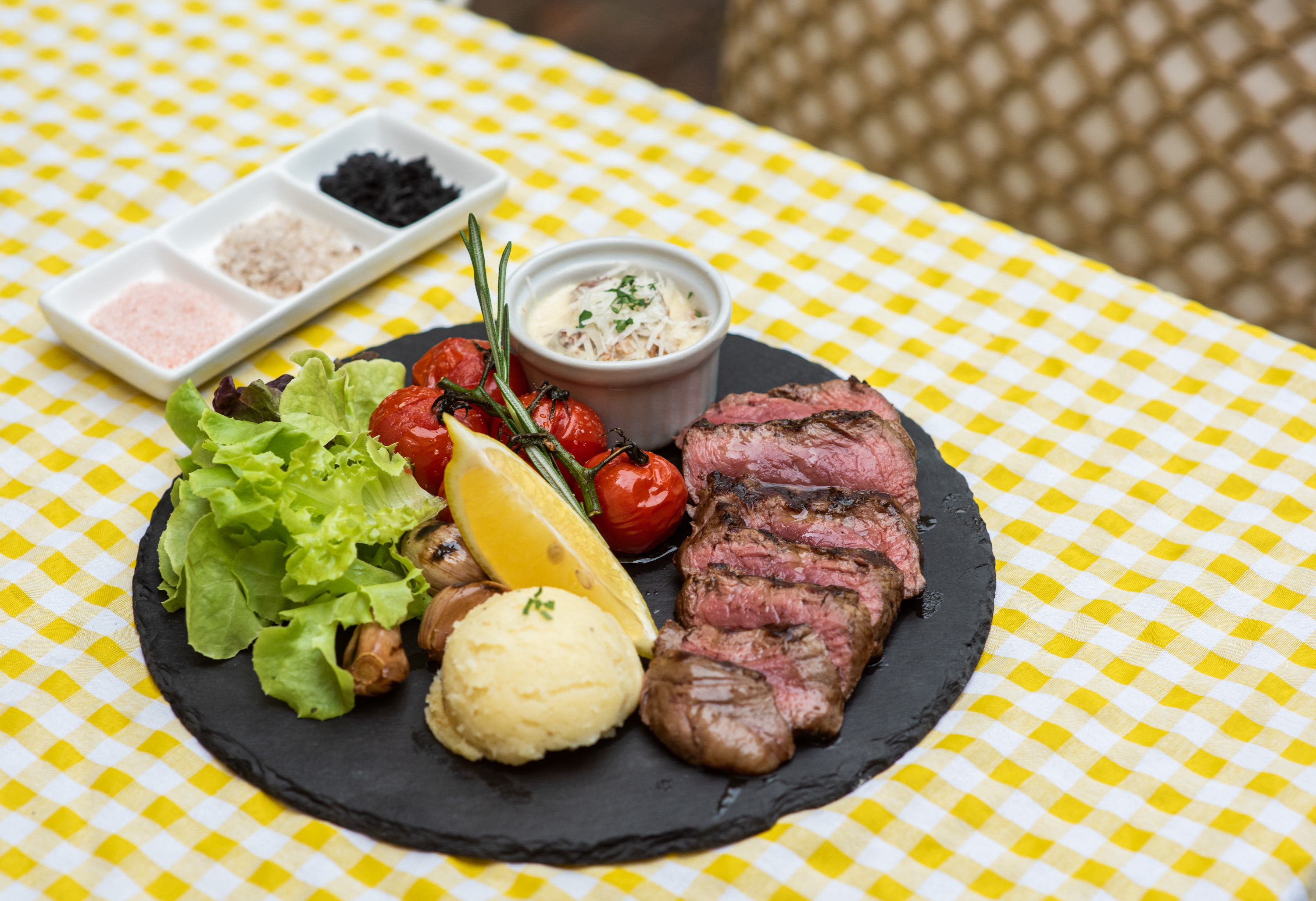 Filetto Di Manzo Alla Griglia E Salsa Ai Funghi (100그램/450바트): 퀄리티가 뛰어난 소고기 안심 스테이크와 크리미한 버섯 소스가 곁들여진 메뉴입니다.