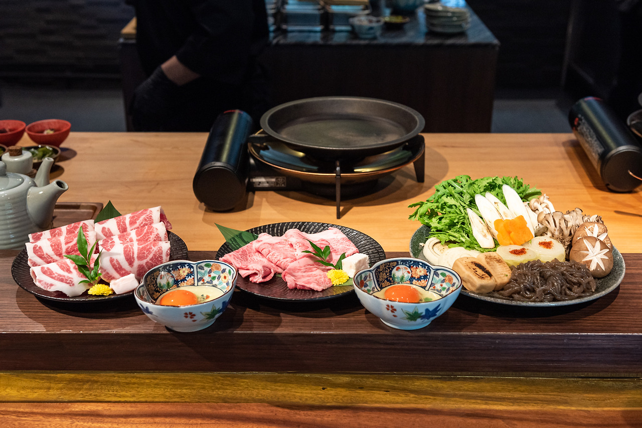 고소하고 풍미가 가득한 스페인산 이베리코 돼지고기를 사용한 스키야키로, 와규와는 또 다른 매력을 선사해요.