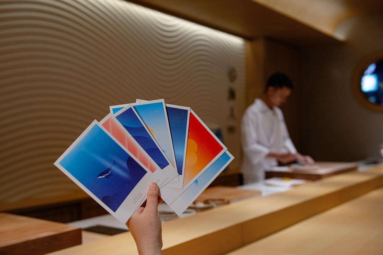 - 각 코스마다 손님에게 제공되는 엽서는 메뉴의 테마와 연결된 예술적인 디자인으로, 식사와 함께 추억을 남길 수 있는 특별한 요소에요.