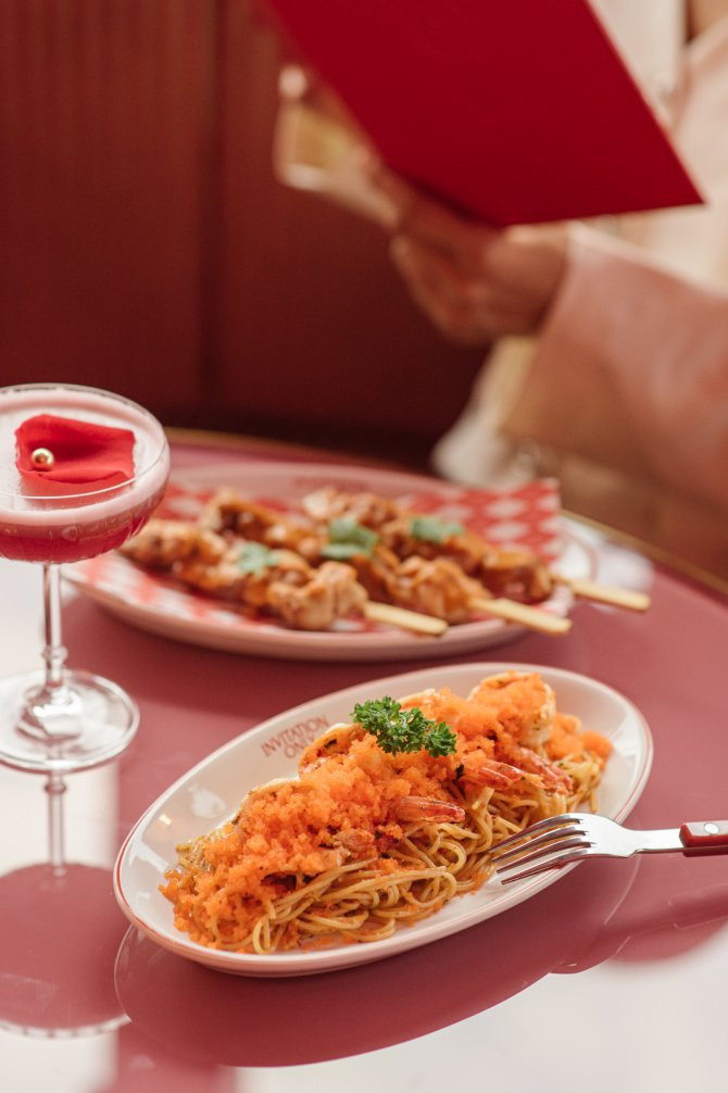 - 매콤한 새우 페이스트와 톡톡 터지는 에비코(날치알)의 조화! 한국인 입맛에도 잘 맞는 파스타 메뉴랍니다. 🍝