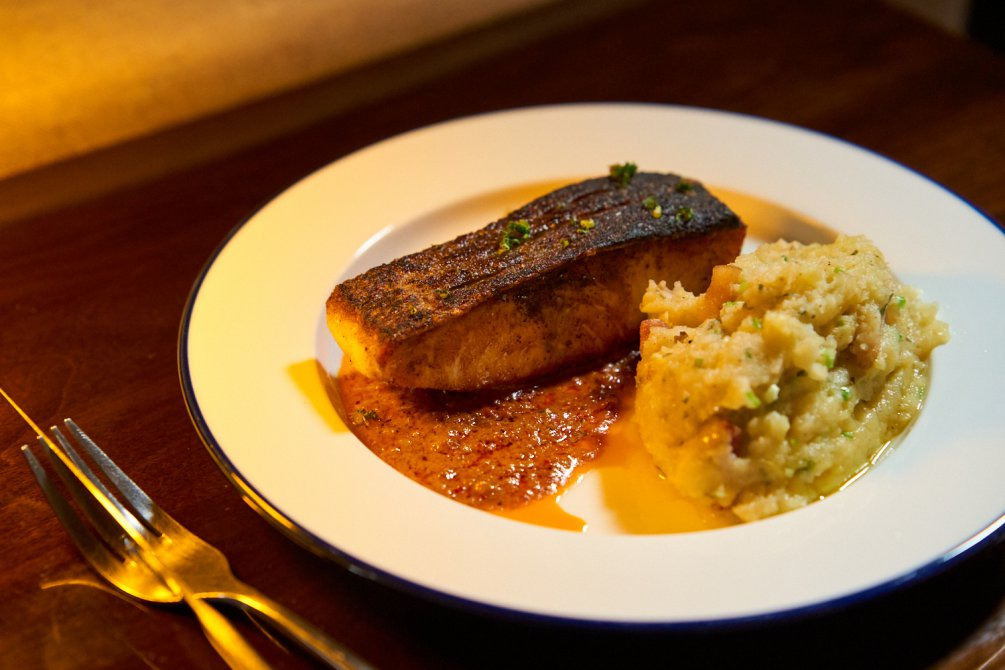- 겉은 바삭하고 속은 촉촉하게 구운 노르웨이산 연어! 매콤한 Nduja 소스와 함께 제공되며, 베이컨이 들어간 매시드 포테이토가 곁들여져 있어요. 고급스러운 메인 디쉬를 원한다면 이 메뉴 강력 추천! 🐟✨