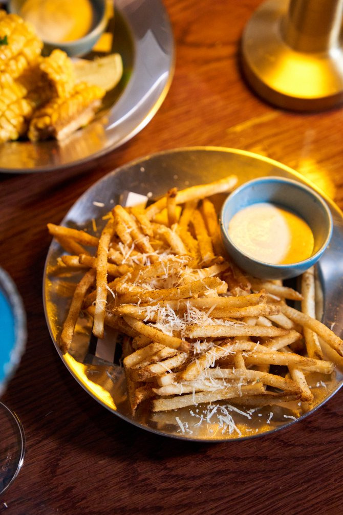 - 바삭하게 튀긴 프렌치프라이 위에 바비큐 시즈닝과 파르메산 치즈를 뿌려줬어요. 갈릭 아이올리 소스까지 더해져 한 입 먹으면 멈출 수 없답니다! 🍟