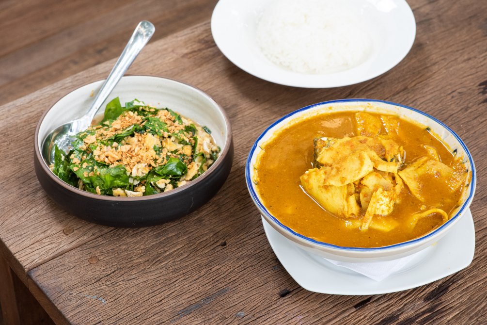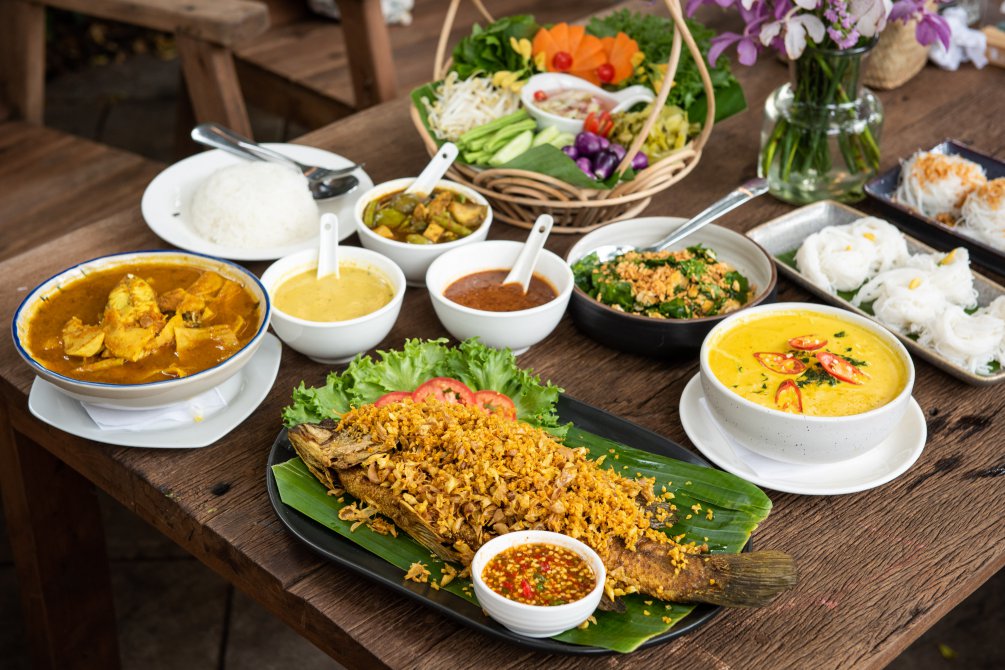Baanrai Studio의 메뉴는 남부 태국 음식의 정통성을 자랑합니다. 가장 인상적인 메뉴 중 하나는 'Kanom Jeen 3 liquids'로, 남부의 코코넛 밀크 커리, 생선 간 커리, 달콤한 칠리 페이스트 등 3가지 소스와 함께 제공됩니다. 이외에도 베텔잎 면에 나오는 게 커리, 울금으로 튀긴 바다 농어 등 다양하고 맛있는 메뉴가 준비되어 있습니다. 각 요리는 식용 꽃으로 장식되어 있어, 식사 전 소셜 미디어에 사진을 올리고 싶게 만듭니다.