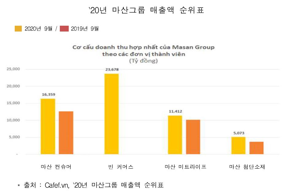 - 베트남 최대 식음료 기업으로 알려진 마산그룹이 유통부문 실적이 저조한 빈마트(Vinmart) 및 빈마트플러스(Vinmart+) 매장들을 대거 정리하며 연말까지 계획된 구조조정에 속도를 내고 있음