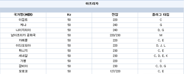 세계 각국의 전압 및 플러그 모양