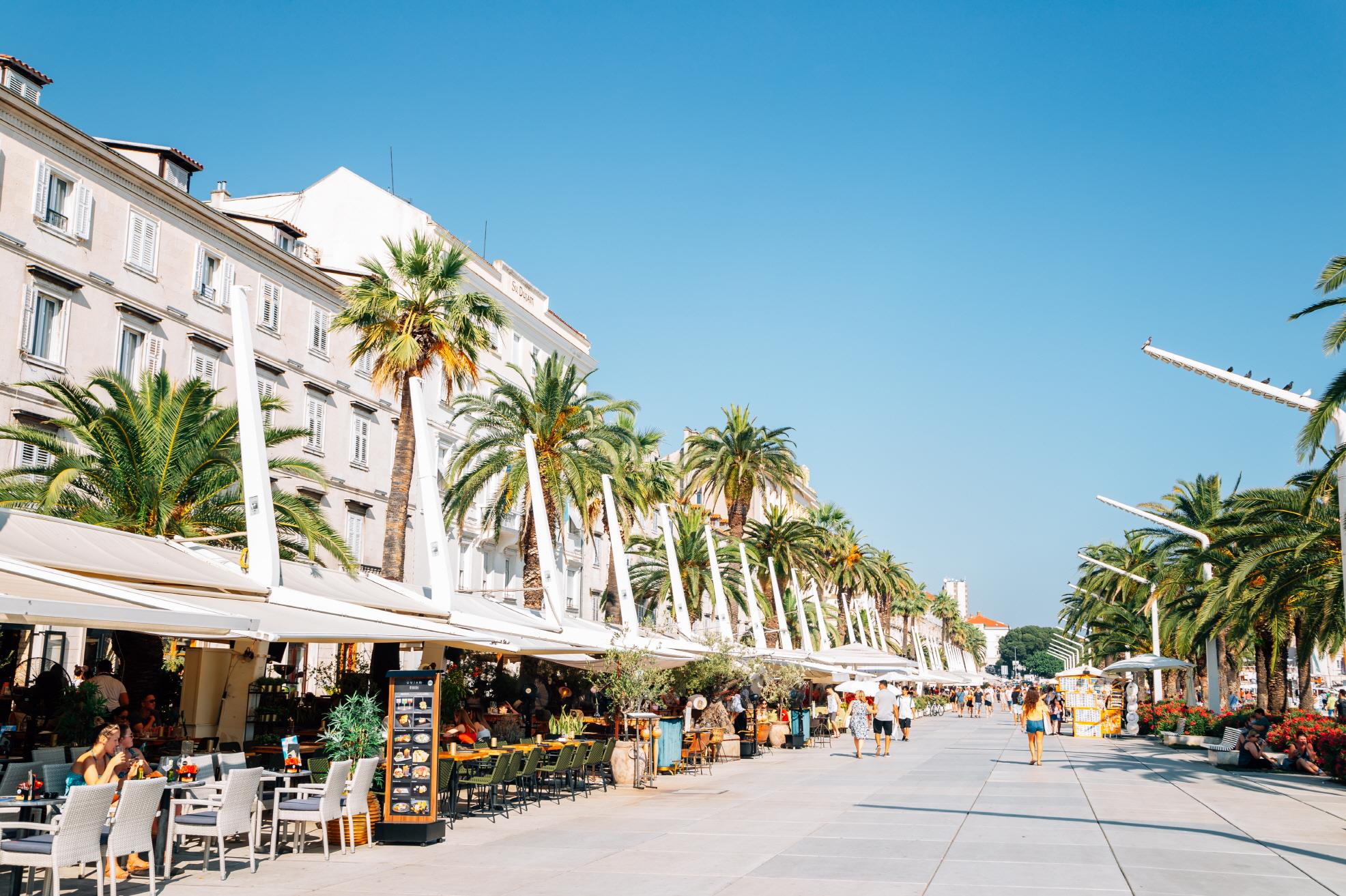 다음으로 스플리트의 유명한 해안가 산책로인 리바(Riva)로 향합니다. 여기에서 항구를 따라 여유롭게 산책하고 전망을 즐기고 멋진 사진을 찍을 수 있습니다. The Riva에는 기념품을 구입하거나 상쾌한 음료를 즐길 수 있는 여러 상점과 카페도 있습니다.