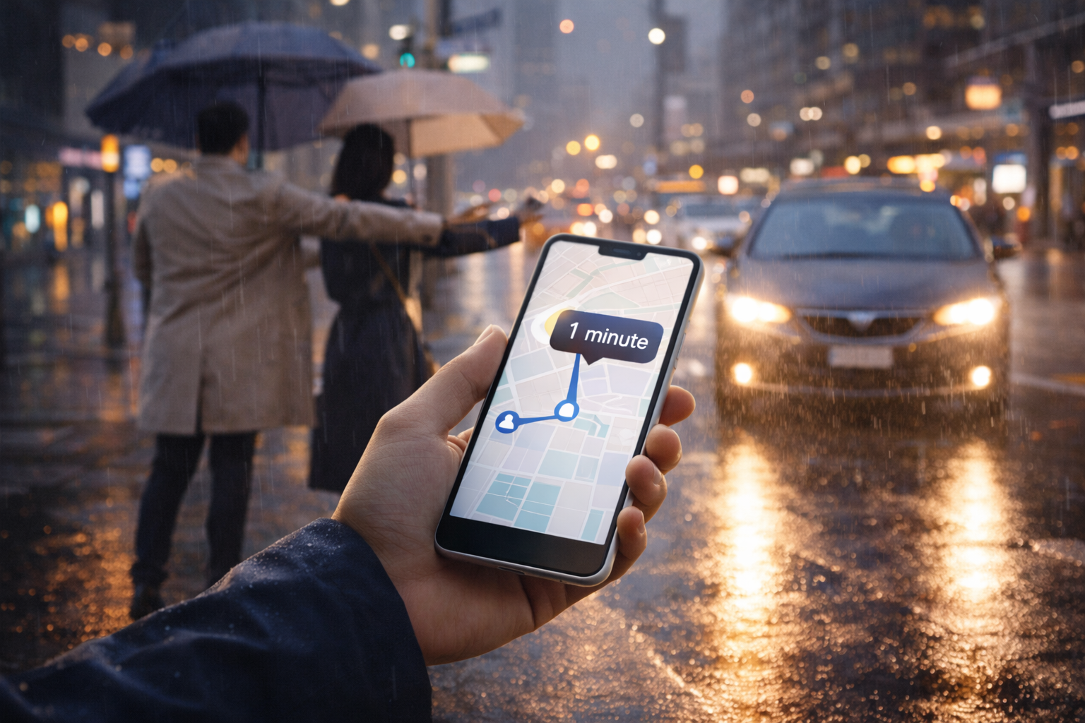 - 비 오는 날 택시가 안 잡히는데, 앱을 켜면 몇 분 뒤 도착 예정이 뜨고