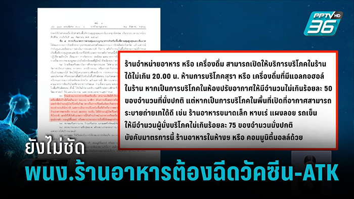 코로나-19 상황 관리 센터(CCSA)는 음식점 식사 관련 문제에 대한 자세한 지침을 발표할 예정이라고 밝혔다. 그런데, 방콕 시청 발표에서는 ‘반드시 백신 2회 접종 또는 7일마다 ATK 검사 검사를 받아야 한다(ต้องฉีดวัคซีนครบ 2 เข็ม หรือต้องตรวจหาเชื้อโควิดด้วยชุดตรวจ ATK ทุก 7 วัน)’고 명시하고 있다.
