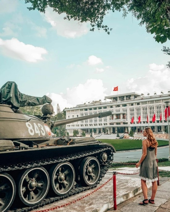 점심 식사 후 베트남 전쟁에 대한 진지한 통찰력을 제공하는 War Remnants Museum을 방문하십시오. 박물관에는 전쟁이 베트남 사람들에게 미친 영향을 보여주는 사진, 유물 및 전시품이 전시되어 있습니다. 전쟁에 사용된 탱크, 비행기 및 기타 군사 장비도 볼 수 있습니다.