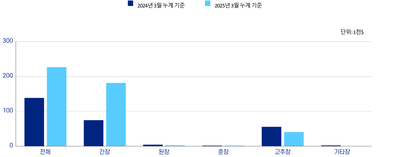🟠 춘장은 예외: 수출액 ↓24.0% / 수출 중량 ↑17.8%