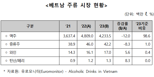 베트남은 동남아 최대 맥주 소비국 중 하나였지만,