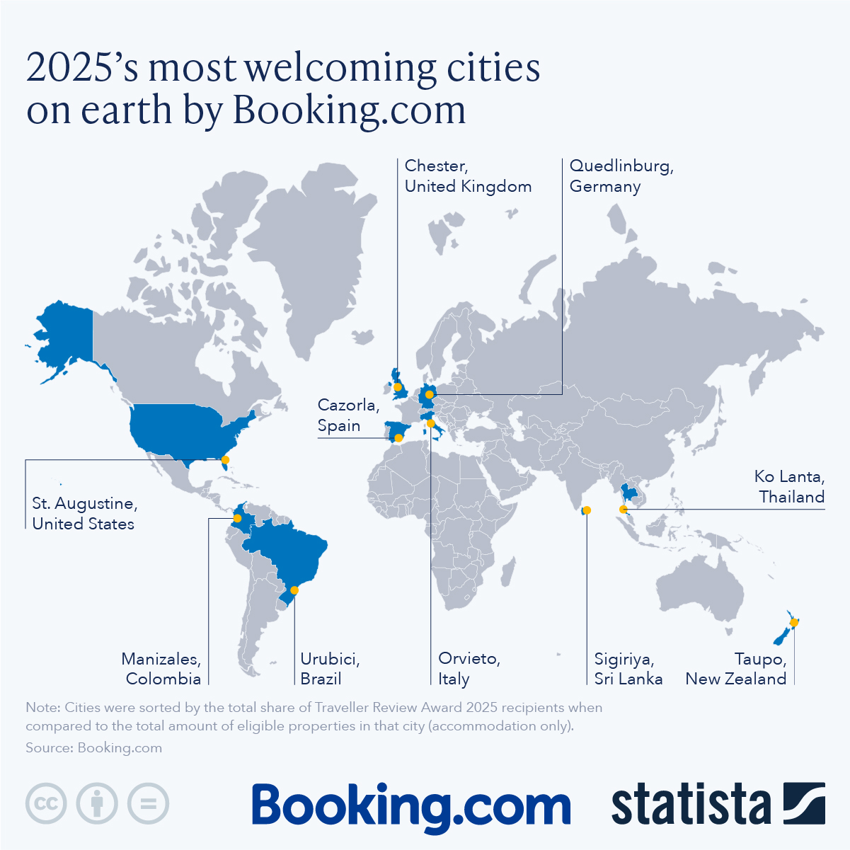 해외여행 계획 중이라면 꼭 주목하세요! Booking.com이 선정한 ‘2025년 지구상에서 가장 환영받는 도시’ TOP10을 한눈에 정리했습니다. 유명 대도시 대신 소도시의 따뜻한 환대가 기다리고 있어요.