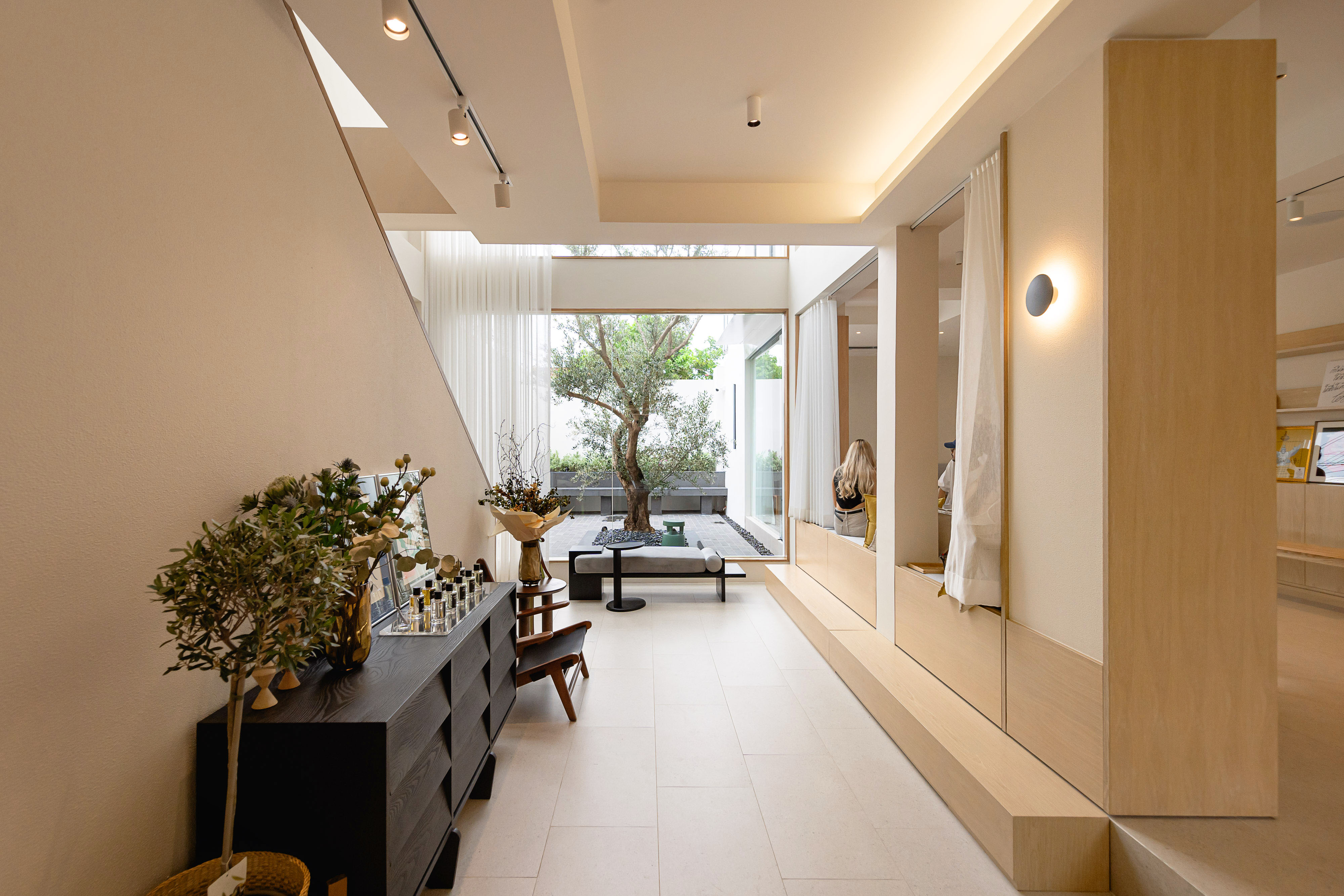 공간과 분위기: 카페의 주인이 디자이너이자 에이전시로 일하는 만큼, 디자인 애호가들에게 즐거움을 주는 개방된 분위기와 눈을 즐겁게 하는 장식이 특징입니다. 특히 넓게 열린 대형 거울 지역이 하이라이트이며, 자연광이 하루 종일 들어오도록 준비되어 있어요. 따라서 언제 방문하더라도 지루할 틈이 없습니다. 다양한 좌석 옵션도 제공되며, 뒷정원에 있는 큰 올리브 나무가 가게의 디자인 톤을 설정하고 완성도를 높여줍니다.