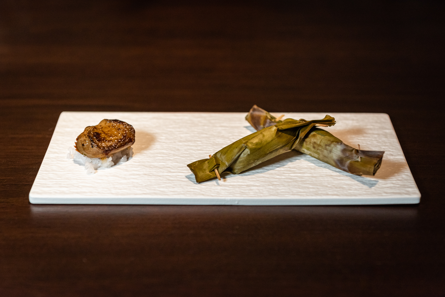- 바삭한 돼지고기 배와 신 매실 소스: 동부 태국의 'Moo Chamuang'에서 영감을 받은 요리로, 바삭한 돼지고기 배 위에 Chamuang 잎 소스를 얹었습니다.
