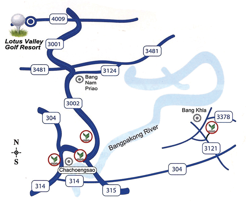 루트 304번 도로를 이용해 민부리를 지난 후 약 57km 지점 차청싸오 방면에서 왼쪽으로 3481 도로에 진입한 후 계속 진행하면 왼쪽으로 골프장 입구가 나타난다. 3481번 도로 접어든 후 약 20분 소요됨