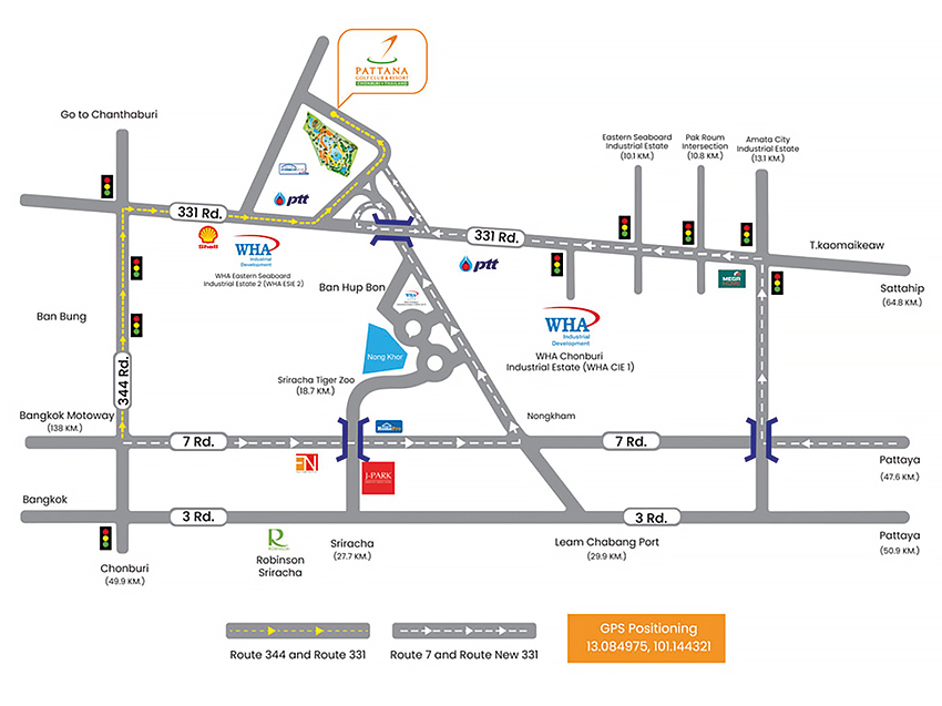 파타야쪽 7번 고속도로나 모터웨이를 이용하면 쉽게 찾아갈 수 있다. 카오키여우 오픈 동물원과 씨라차 타이거 동물원의 위치를 알고 있다면 아주 쉽게 찾아갈 수 있다.