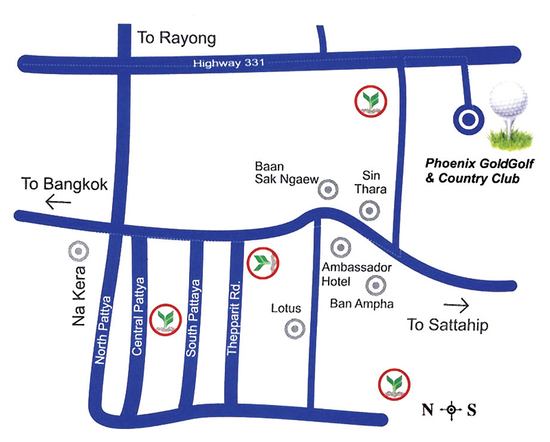 파타야 수쿰빗 로드를 따라(루트 3번) 싸타힙 쪽으로 가다보면 엠배서더 호텔과 오션 마리나 호텔이 나오고 이를 지나면서 나오는 신호등에서 좌회전 한 후 약 4km 정도 더 진행하면 골프장 입구가 나온다.