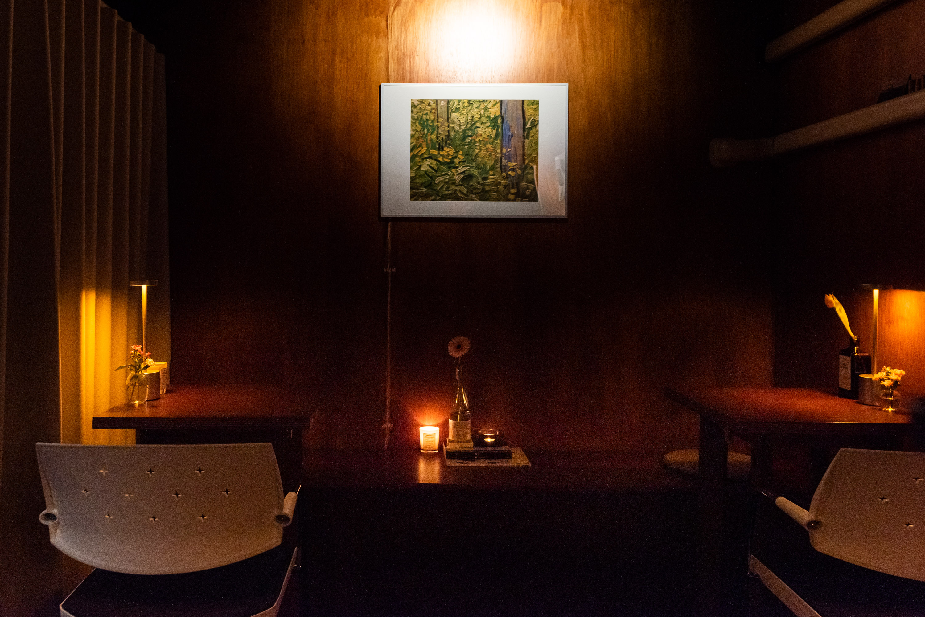 가게의 분위기는 마치 친구 집을 방문한 듯한 편안함을 선사합니다. 따뜻한 목재 소재와 어둡게 조명된 공간은 고즈넉한 밤을 보내기에 안성맞춤입니다. 특히, 향초의 은은한 향과 따스한 조명은 방문객들에게 잊지 못할 밤의 경험을 선사합니다.
