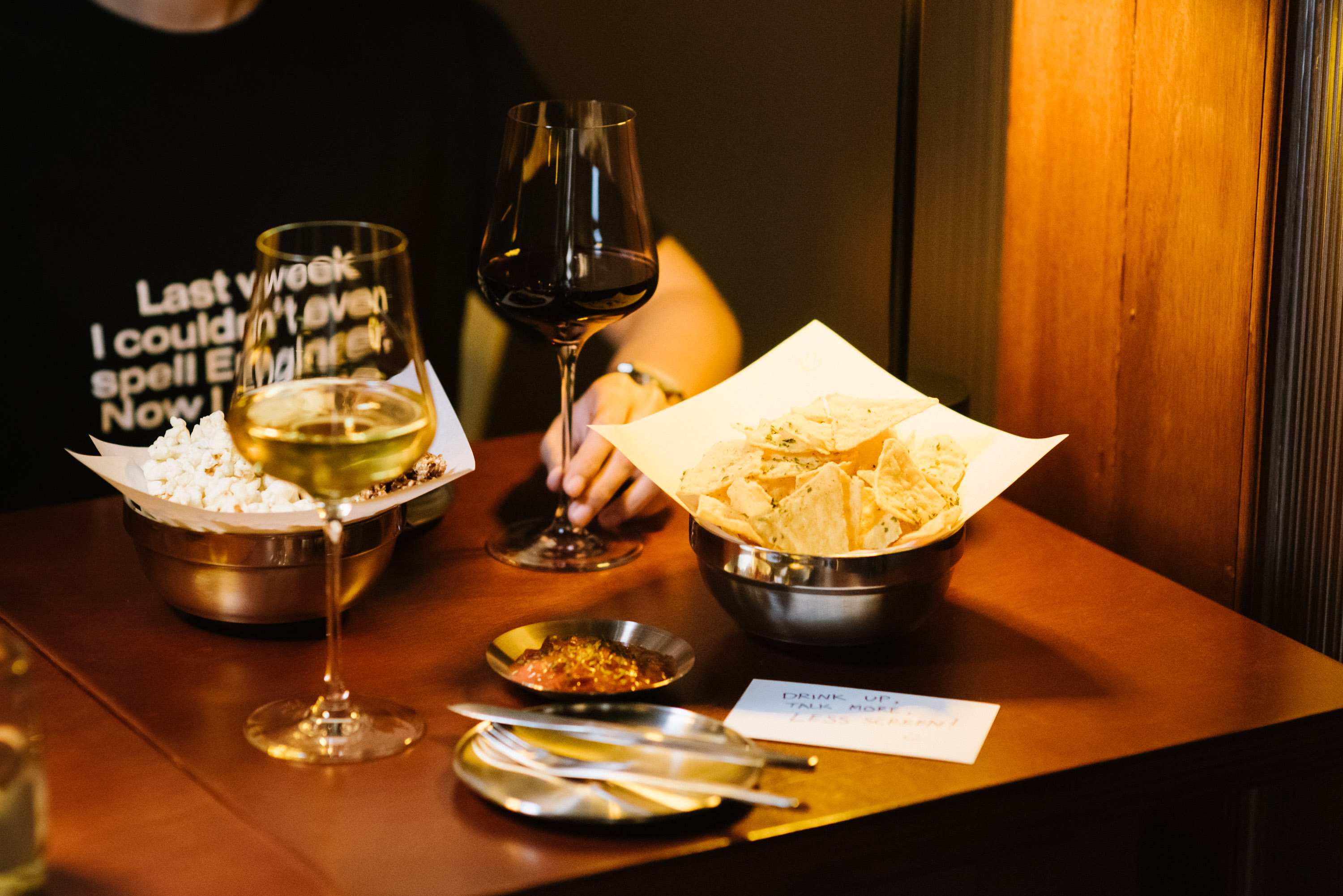 음식 메뉴 또한 와인과의 페어링을 고려하여 간단하면서도 맛있게 준비되어 있습니다. oben Popcorn, House Nacho, Kiddo Sandwich와 같은 메뉴는 태국 농부들로부터 공급받은 재료를 사용하여 만들어지며, 각각의 메뉴는 와인과 함께 즐기기에 완벽합니다. 특히, Spicy Mhee-Gai-Cheek와 oben Platter는 와인과 함께 즐기기에 더할 나위 없이 좋은 선택입니다.
