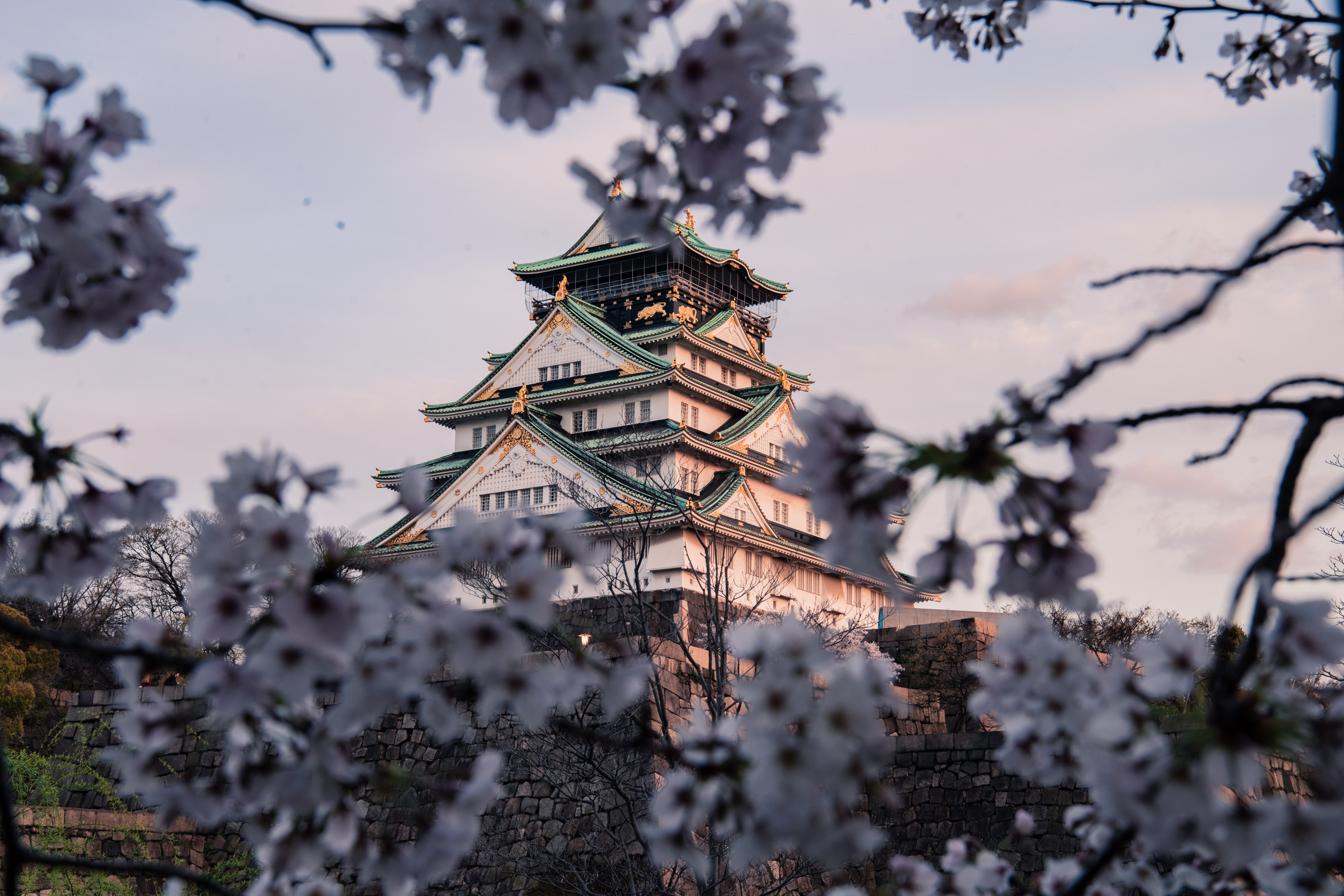 In addition to its historical significance, Osaka Castle is also known for its beautiful grounds and gardens, which are a popular spot for picnics and hanami (cherry blossom viewing) in the spring. There are also several beautiful moats and gates surrounding the castle, which add to its impressive appearance and give visitors a sense of the scale of the castle.
