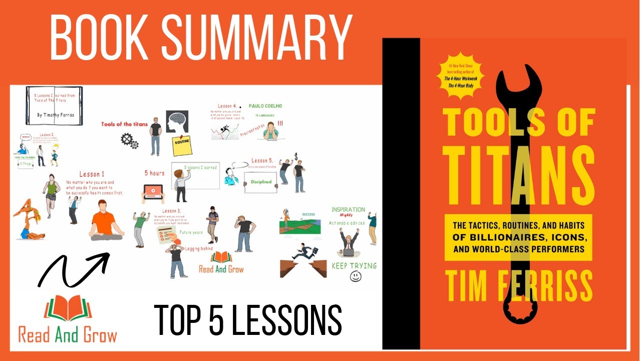 Tools of Titans는 Tim Ferriss가 저술한 책으로 세계에서 가장 성공한 사람들의 통찰, 팁, 전략을 담고 있습니다. 이 책은 Healthy, Wealthy, Wise의 세 부분으로 나뉩니다. "건강" 섹션은 영양, 운동 및 수면 주제를 다룹니다. "부자" 섹션은 생산성, 협상 및 투자 주제를 다룹니다. 마지막으로 "현명한" 섹션에서는 의사 결정, 창의성 및 학습 주제를 다룹니다. Ferriss는 책 전반에 걸쳐 기업가, 운동 선수, 예술가 등 다양한 분야에서 성공한 개인을 인터뷰하고 그들의 조언과 습관을 공유합니다. 이 책은 독자들에게 목표를 달성하는 데 도움이 되는 실용적인 도구와 기술을 제공하는 것을 목표로 합니다.