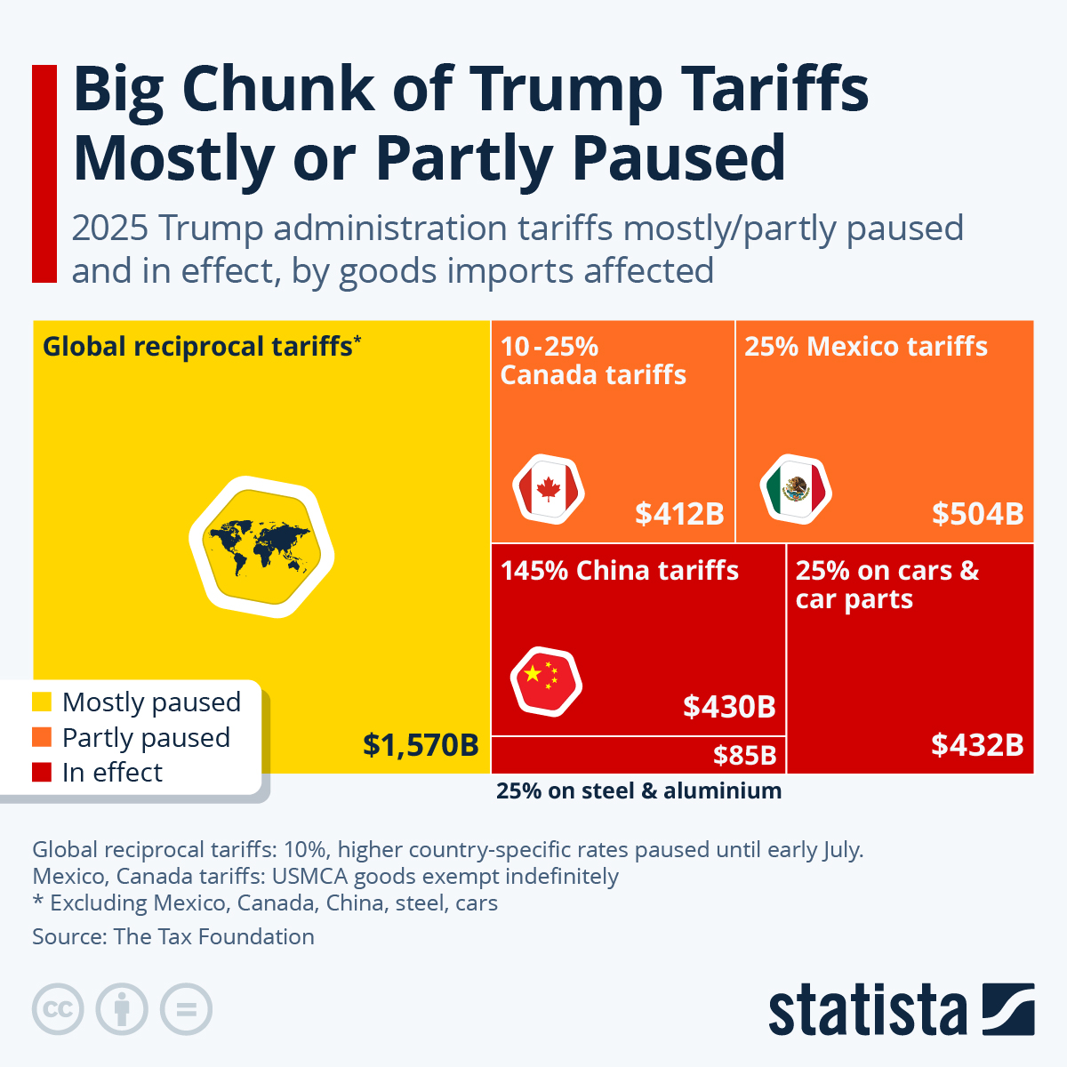 2025년 기준 트럼프 행정부 관세 조치 중 상당 부분이 일시 중단되었습니다. 글로벌 10% 관세부터 멕시코·캐나다, 중국·철강·자동차 관세 현황과 시사점을 한눈에 정리했습니다.